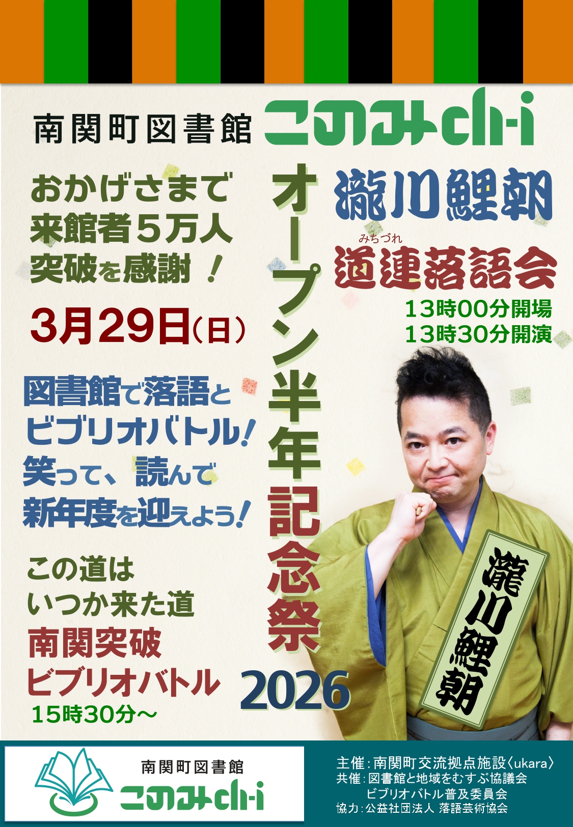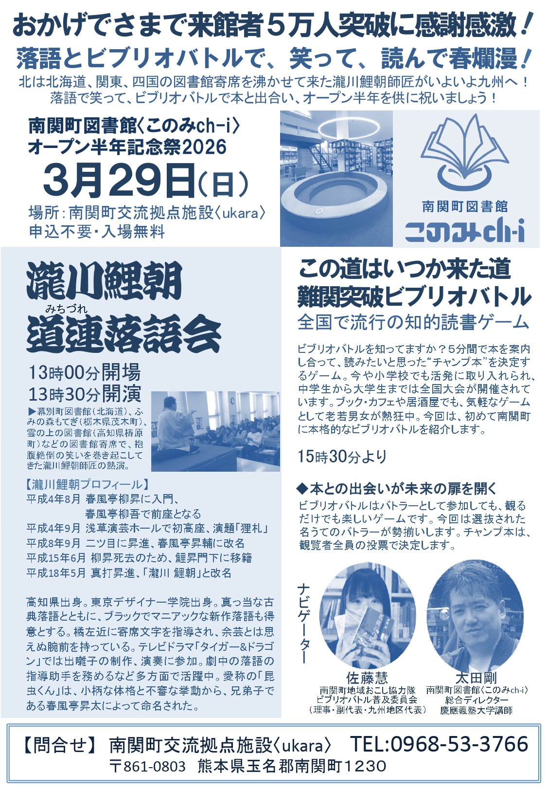北は北海道、関東、四国の図書館寄席を沸かせて来た瀧川鯉朝師匠がいよいよ九州へ!